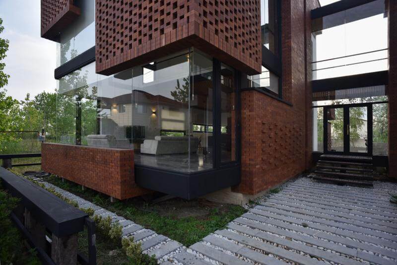 - نمای شیشهای و سنگی